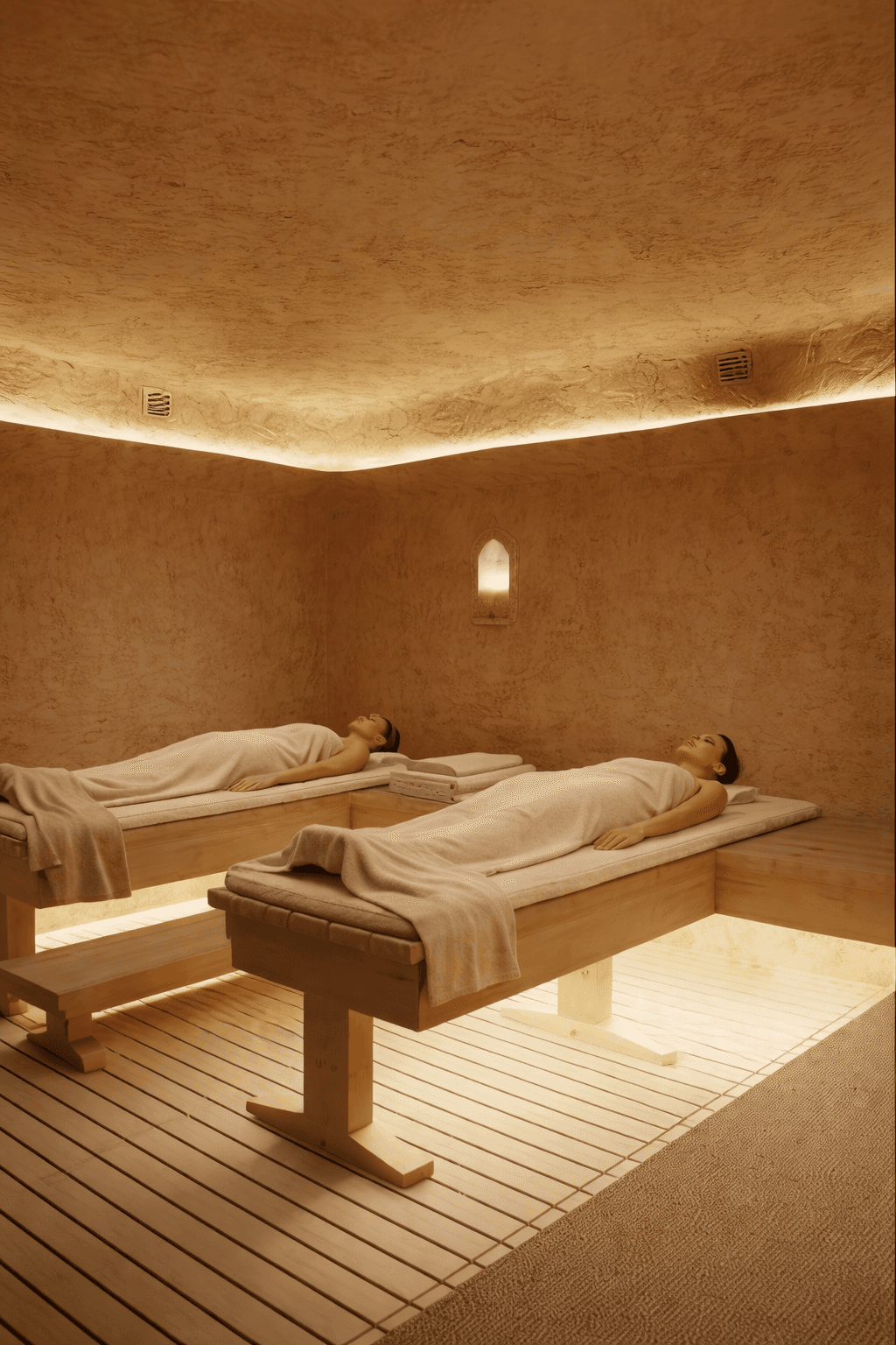 Experience deep restoration through therapeutic sound, tranquil lighting, and curated frequencies powered by Bang & Olufsen.